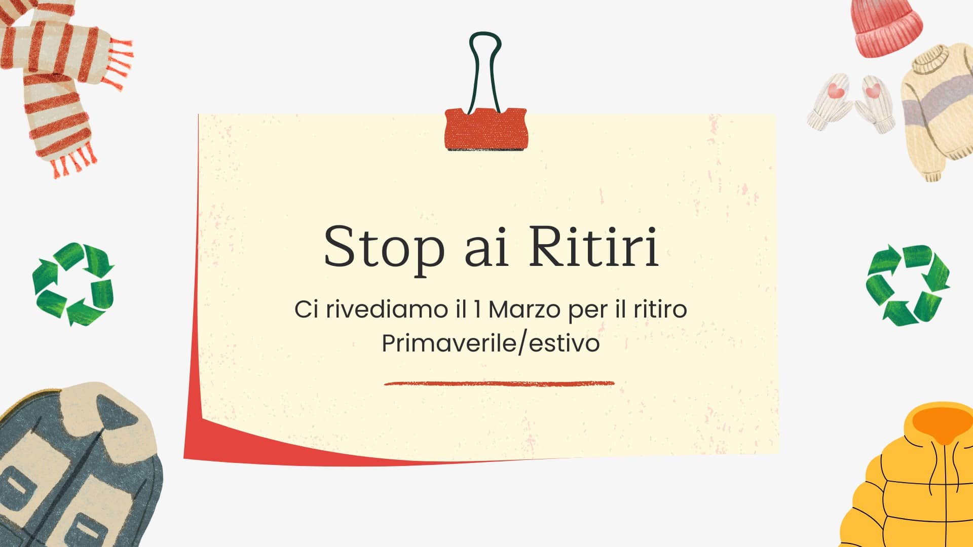 Hai un armadio pieno di capi che non metti più? Portali in negozio! Ma prima, prenota il tuo appuntamento online: dal 1° Settembre al 15 Gennaio e dal 1° Marzo al 15 Giugno. Facile e veloce!